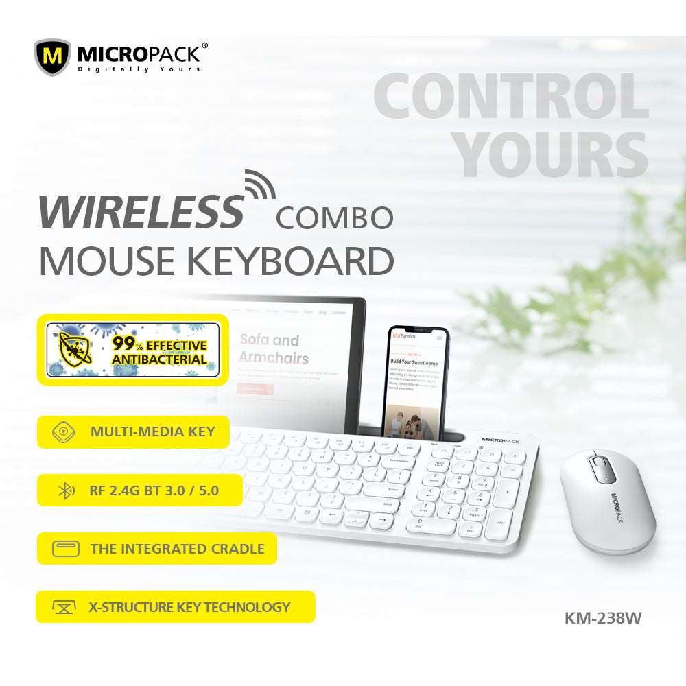 Box Content: 1. Wireless mouse 2. Wireless keyboard 3. USB receiver 4. 2 AAA batteries 5. 1 AA battery 6. User manual 7. Warranty card