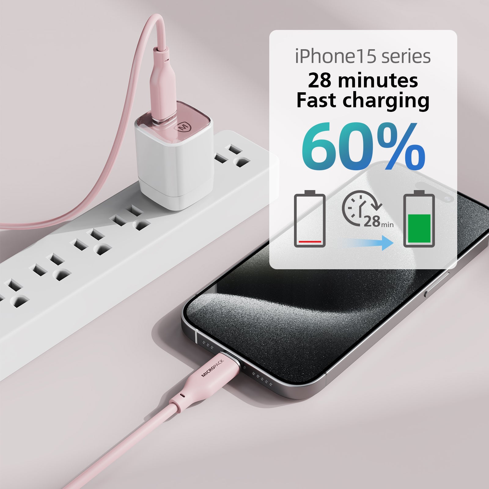 60W Fast Charging: Special cable design to support 3A; fast current streaming to your devices. It can charge the iPhone 15 series to 60% in 28 minutes.
