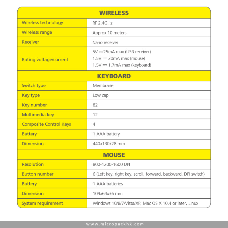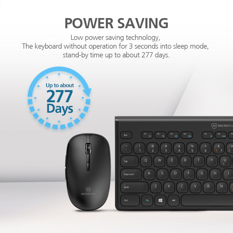 Power Saving: Low power saving technology, the keyboard without operation for 3 seconds into sleep mode, stand-by time up to about 277 days.