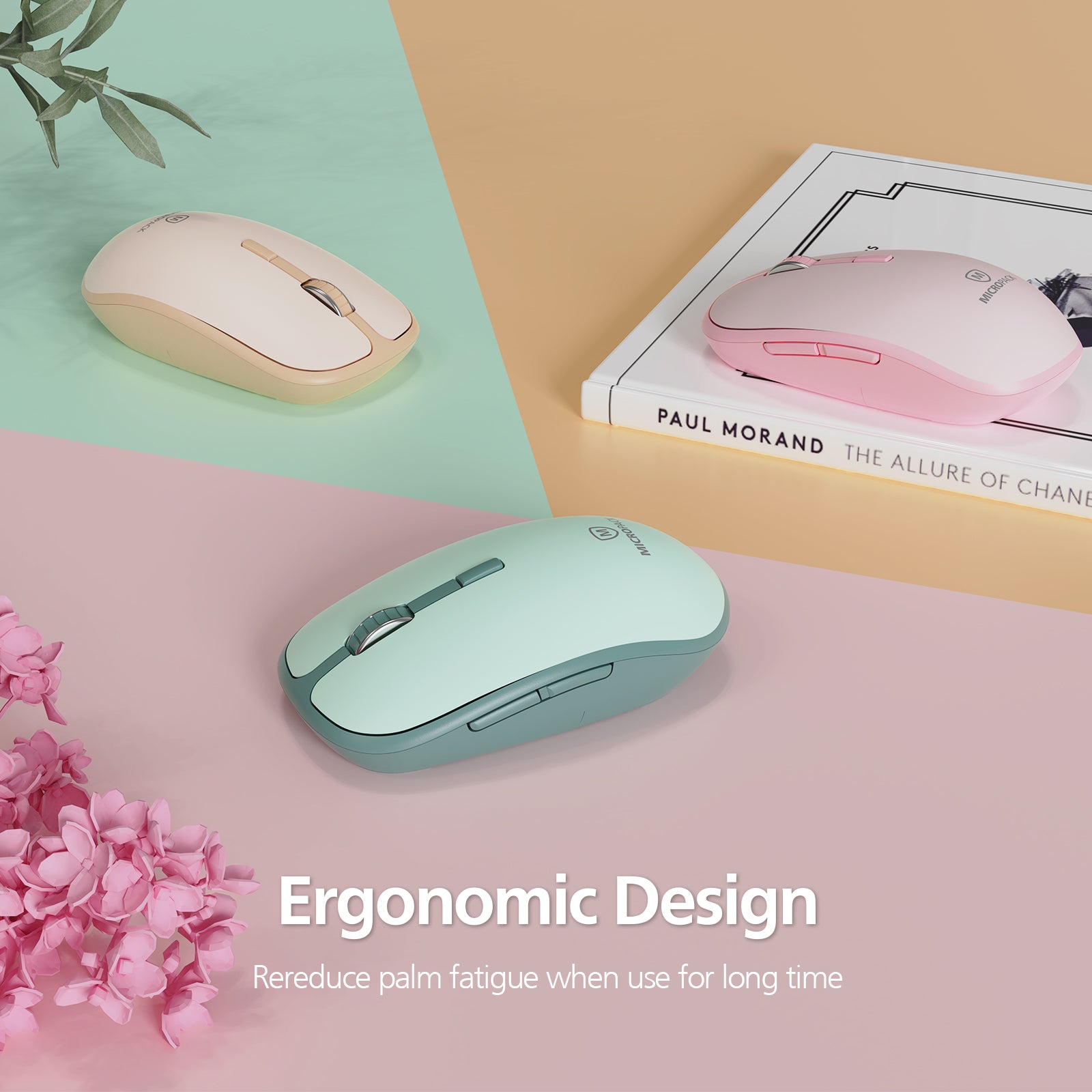 Dual Mode Bluetooth Mouse: Bluetooth and 2.4G connection allow for easy switching to control up to two devices by clicking the switch button at the bottom of the mouse.