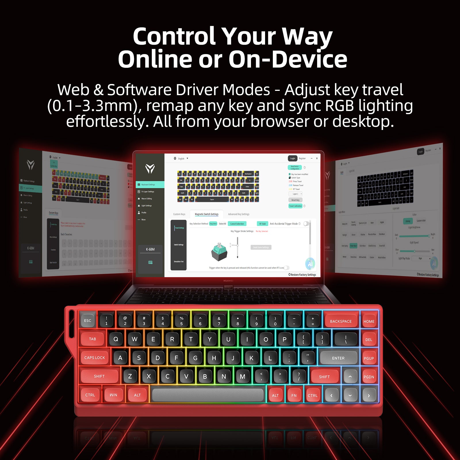 Full Control Through Web/Software Driver: Personalize RGB lighting effects, fine-tune trigger sensitivity, record complex macros and design smart key combos - All from one intuitive interface.