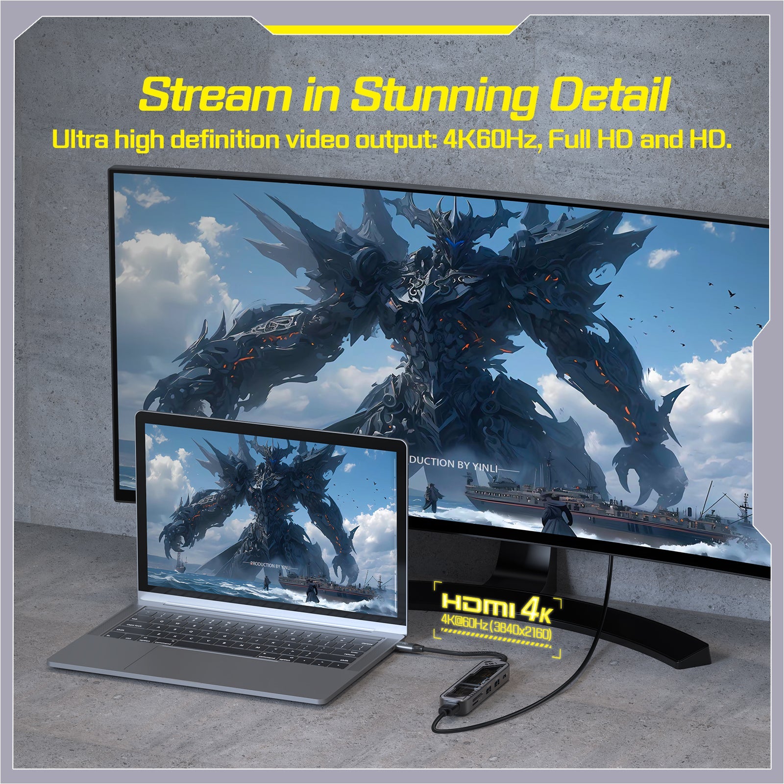 High-Speed Transmission: Enjoy a cinematic visual experience with 4K@60Hz via HDMI, lightning-fast file transfers with USB 3.2, and enhanced efficiency.